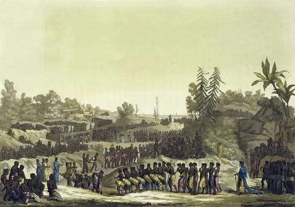 'Festa in onore del dio serpente' (Festival in honor of the God Snake), Ouidah. 19th-century engraving by Giovanni Antonio