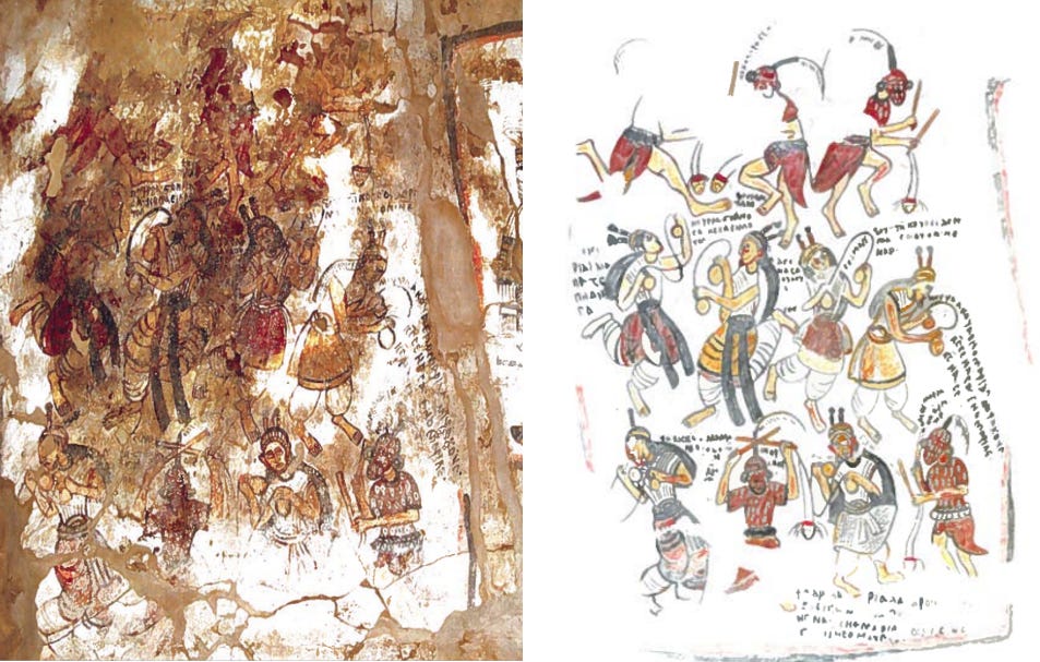 Painting depicting a dance scene, Kom H monastery, ca. 12th-14th century, Old Dongola, Sudan.