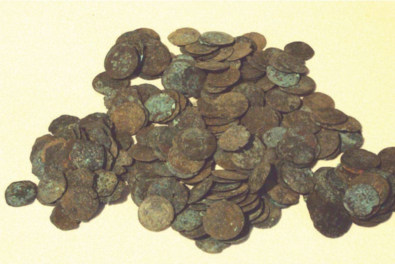 The Mtambwe Mkuu hoard of silver coins, Pemba Island, Tanzania. Image by S. Wynne-Jones.