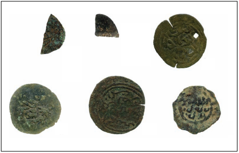 Coins from Songo Mnara, Tanzania. including two clipped coins and a pierced coin. Image by S. Wynne-Jones and J. Fleisher