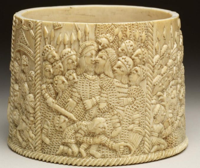 ‘The kiss of Judas’ ivory pyx by Sapi artist, Sierra Leone, ca. 1490-1530. Walters Art Gallery. (see previous essay on Early Christianity in West Africa (ca. 1500-1820) )