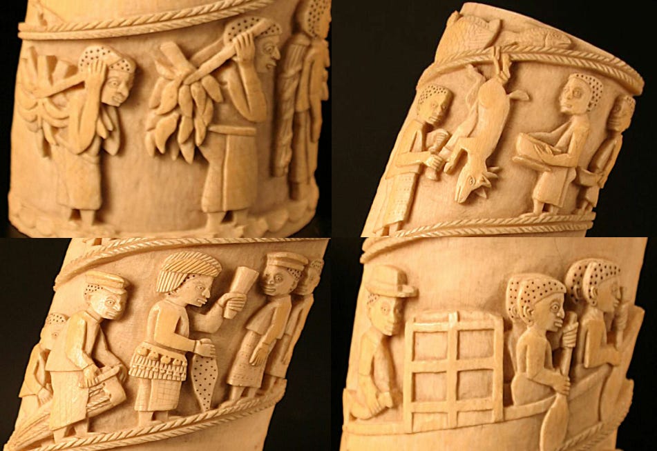 Scenes of daily life carved in ivory. Loango, Gabon. late 19th century. British Museum