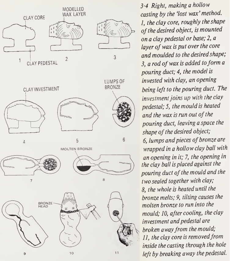 Illustration of the lost-latex casting process of Igbo-Ukwu bronzes according to T. Shaw, 1977