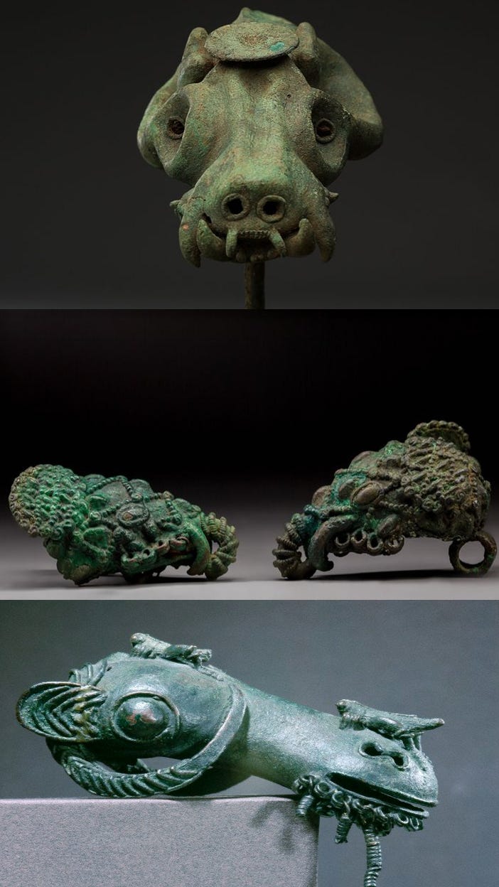 Bronze pendant in the form of a leopard’s head, bronze pendants in form of rams heads, bronze ram’s head, 9th century NCMM Nigeria.