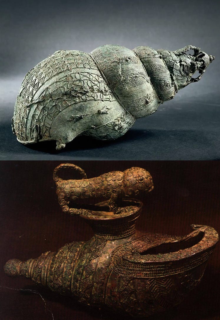 The cire-perdu casting involved modeling the desired object in wax (or in this case latex from the Euphorbia plant), the obtained model of which is then dipped in clay which is then heated to leave a fired clay model, into which molten bronze is poured and the clay broken off. The exact technique used for the Igbo Ukwu bronzes involved a slightly more complex process than this; with objects often cast in many pieces that were then joined together by separately poured in metal, but this process had been out of use across the rest of the old world for many centuries, which strongly suggests its independent invention by Igbo Ukwu artists working in isolation.14