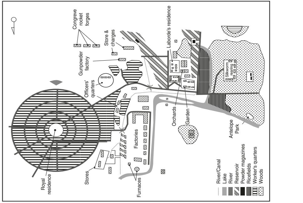 Mantasoa industrial complex in the early 19th century. Illustration by G. Campbell