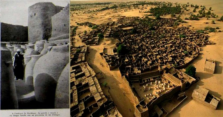 Storage vessels for provisions inside the old fort at Fachi, Kawar, Niger. ca. 1934
