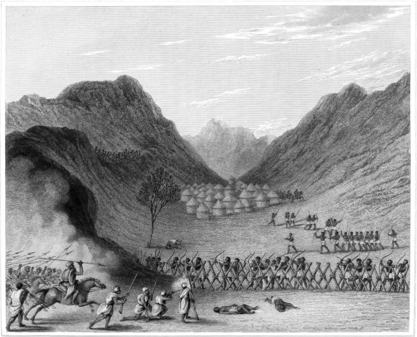 ‘Attack on Musfeia’ ca. 1826. engraving based on a sketch by Denham