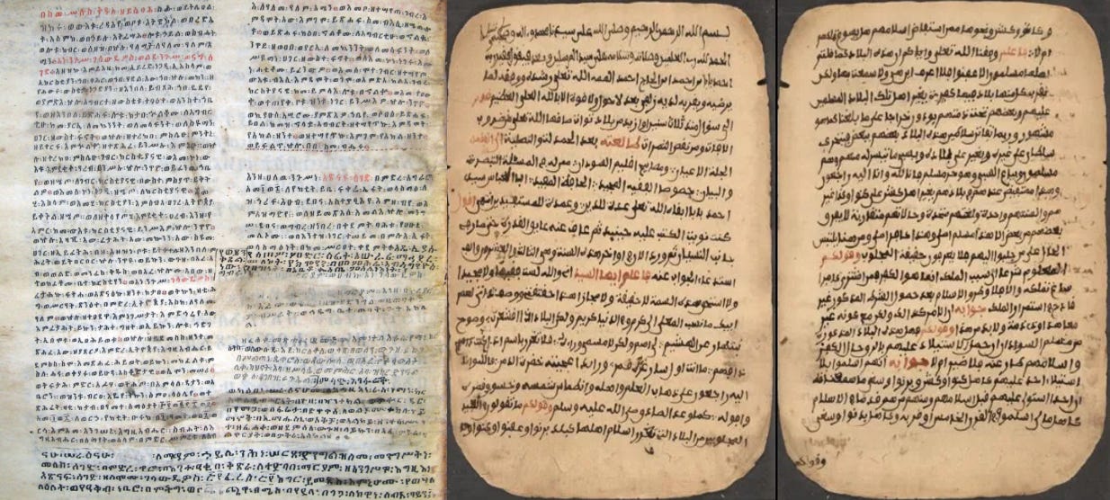 (left) The 16th-century edict of Gälawdéwos at the Tädbabä Maryam church, Ethiopia. (right) Copy of Ahmad Baba’s 17th-century treatise on slavery. Library of Congress
