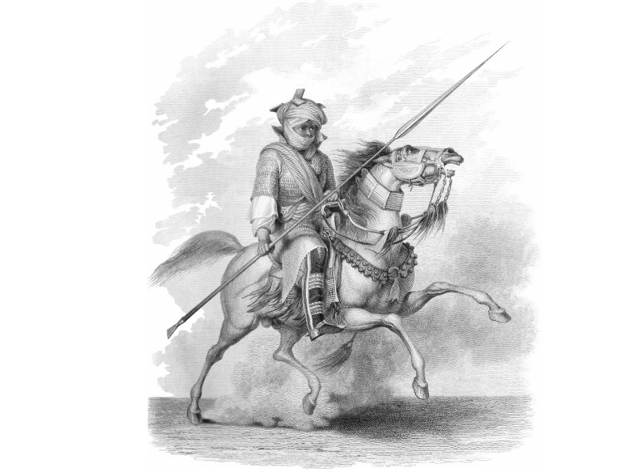 ‘Body Guard of the Sheikh of Bornou’ engraving based on a sketch by Denham. 1826. The accompanying text suggests that this was a depiction of Barca Gana.