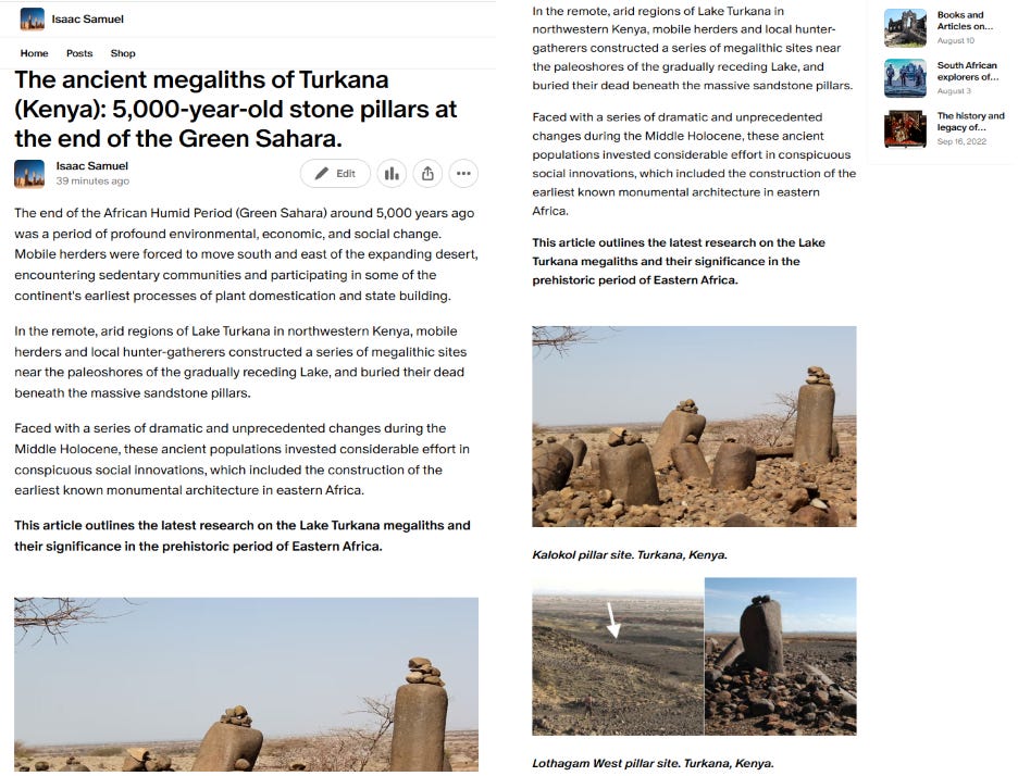 My latest Patreon article outlines the latest discoveries on the Lake Turkana megaliths, the functions of the structures, and their significance in the prehistoric period of Eastern Africa.