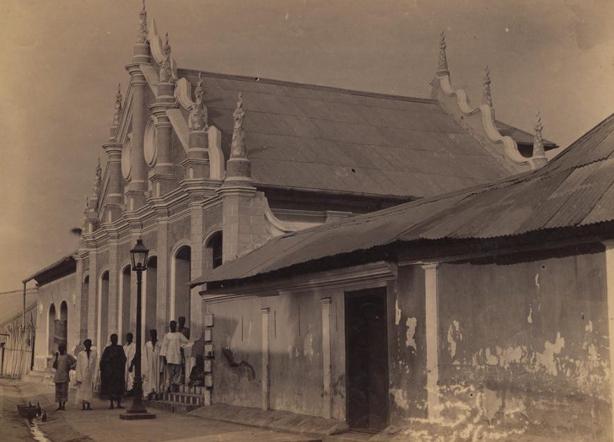 The Shitta-Bey Mosque in Lagos, an Afro-Brazilian style structure built in 1892 by businessman Mohammed Shitta Bey, who was the son of Sierra Leonean parents of Yoruba descent. British Museum. (see my previous essay on ‘Contributions of Liberated Africans to the economic and cultural growth of 19th century west Africa’)