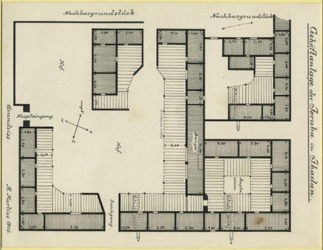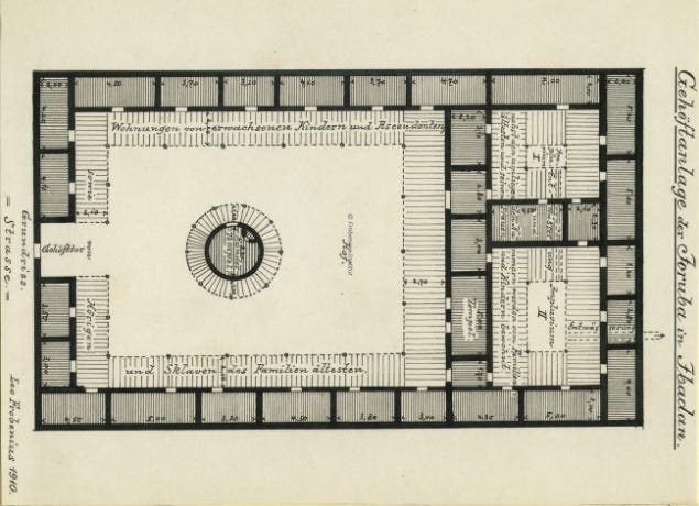 Floor plan of a Yoruba homestead in Ibadan, Illustration by Leo Frobenius, ca. 1910-1912