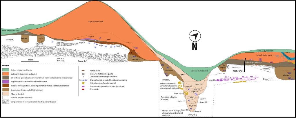 Profile of the earthwork at Oke-Atan I, Ile-Ife, Osun State. Profile by Gérard Chouin