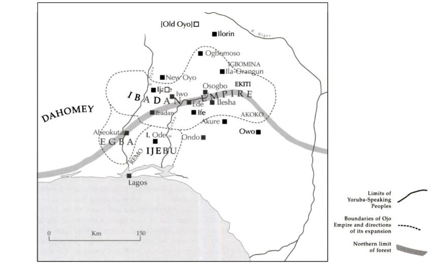 Religious Encounter and the Making of the Yoruba By John David Yeadon Peel pg 36-37. for a general overview of Ibadan’s political institutions during this period, see The Balogun in Yoruba land: The Changing Fortunes of a Military Institution by Oluwasegun Mufutau Jimoh