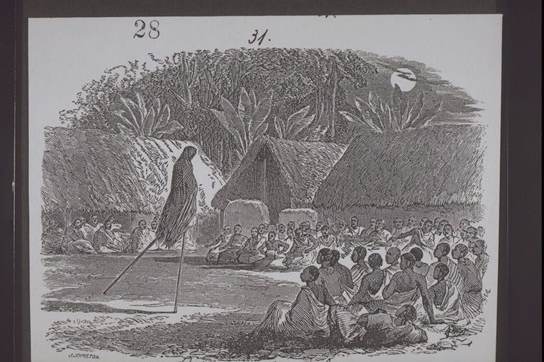 "Jebu sports - Dancing on stilts" engraving by Dr Irving, ca. 1855. (see my previous essay on ‘A history of Yoruba intellectual culture ca. 1000-1900 AD’)