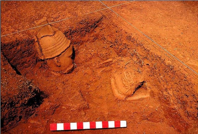 Terracotta altar found by Frank Willett at the Grid site in Ita Yemoo, in association with a paved complex. Image reproduced by Gérard Chouin