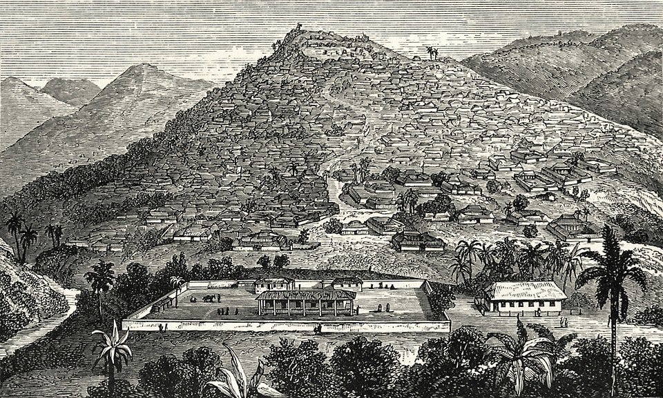Engraving depicting Ibadan in 1854 by Anna Hinderer