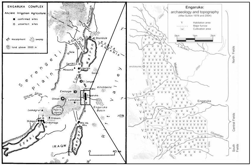 The development and expansion of the field and irrigation systems at Engaruka, Tanzania, by Daryl Stump, pg 90-91. The development of the ancient irrigation system at Engaruka, northern Tanzania: physical and societal factors, pg 312-314