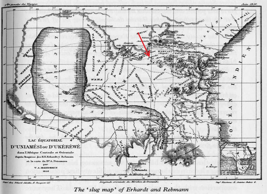 Engaruka on the so-called ‘slug map’ of Erhardt and Rebmann. ca. 1855
