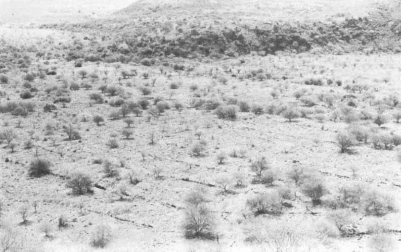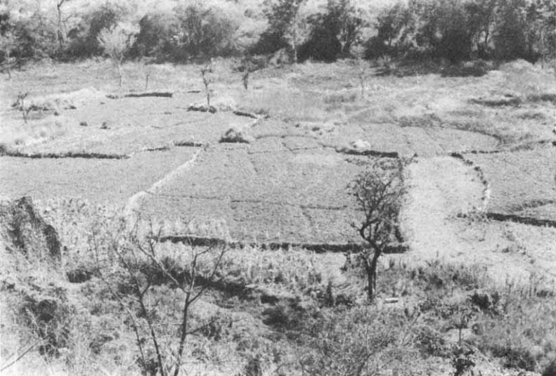 The mosaic of the Engaruka fields towards the southern extremity, on the lower part of the outwash of the Olemelepo river. Image and Captions by J. E. G. Sutton. (1978)