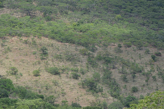Abandoned terraces at Lembeni, North Pare, Tanzania (left) and Vudee, South Pare, Tanzania (right). Images by Daryl Stump